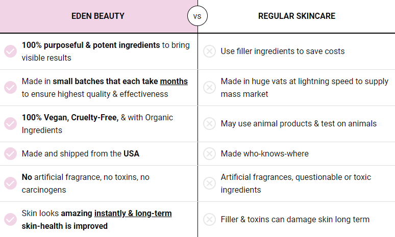The Eden Beauty product formulations simply do not lie.